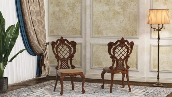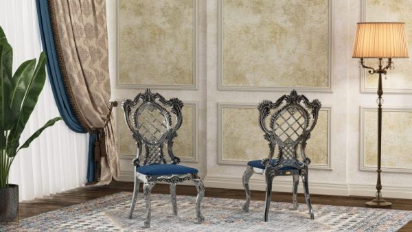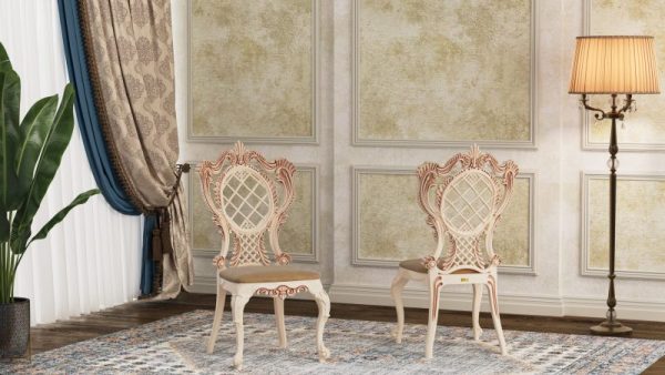 میز و صندلی ناهارخوری یونیک ترکیب طراحی کلاسیک و مدرن و الهام گرفته از طبیعت با نقش و نگار زیبای گل های بهاری، مناسب برای انواع دکوراسیون و سالن های غذاخوری و تالارهای عروسی.