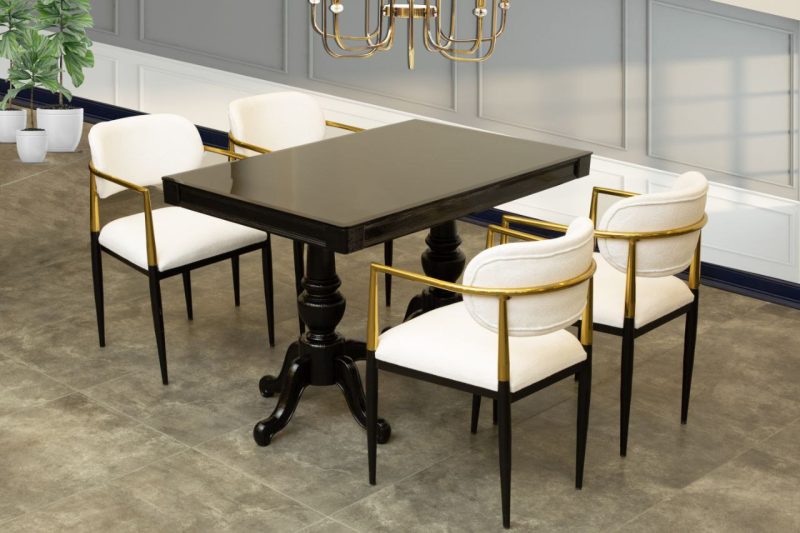 میز و صندلی ناهارخوری لیلاک ترکیب طراحی مدرن و الهام گرفته از نقوش هندسی، مناسب برای انواع دکوراسیون منازل، کافه ها و رستوران ها.